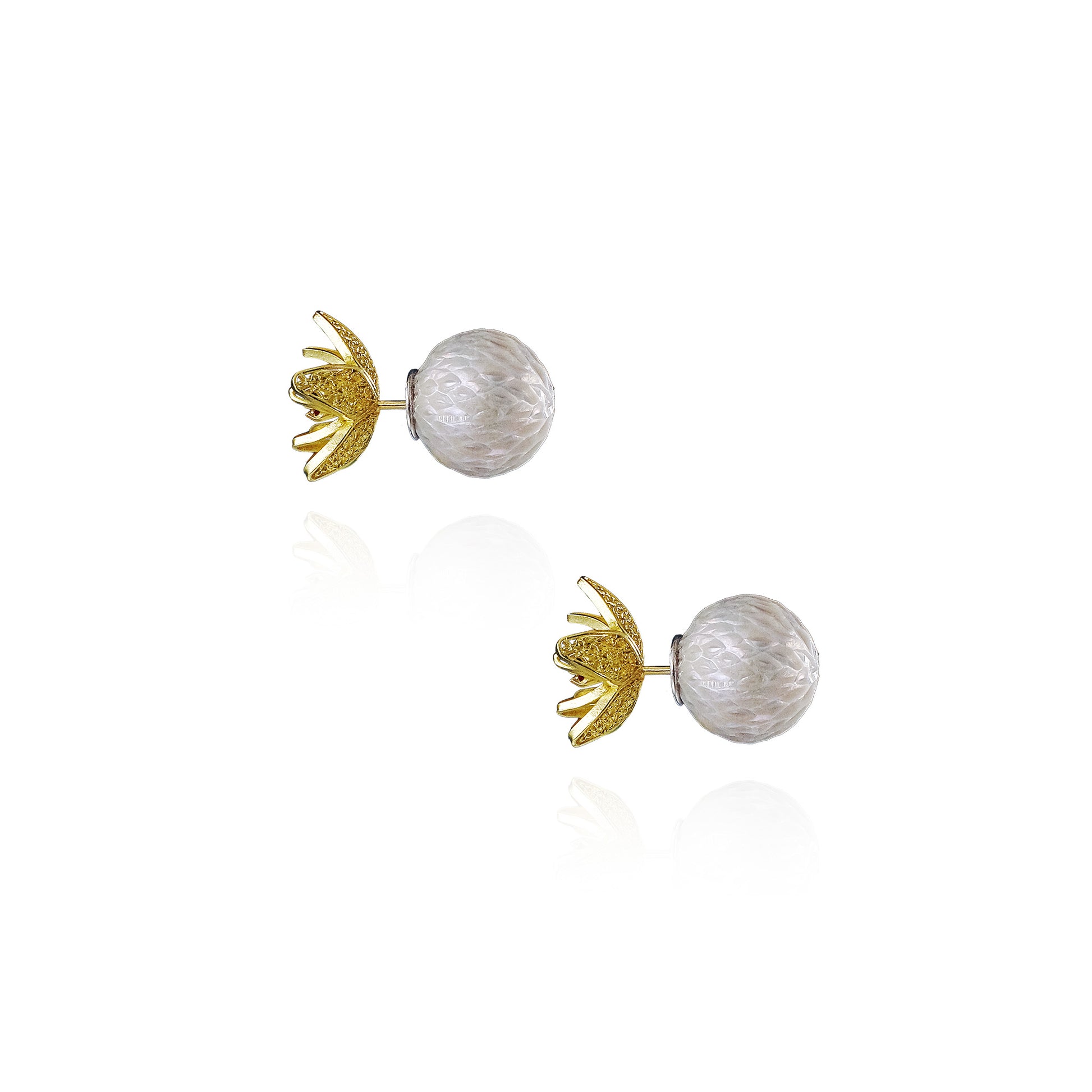 Jasminum Earstuds with Pearl Backings (18k yellow gold ruby and silver pearl back)